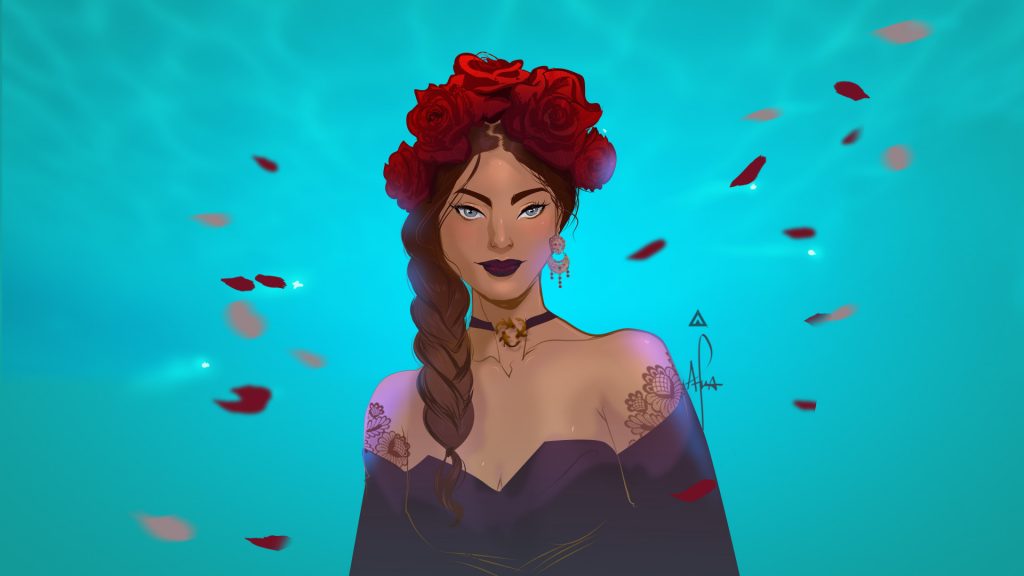 Based on that legend, the collection of Koi fish became a symbol of aspiration and perseverance that sparked the idea for the Book of Mer. A retelling of those aquatic tales from all over the world. This KoiMaid is based on the popular Japanese variety, The Taisho Sanke.